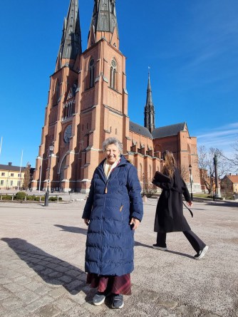 Eleanor lives in Upsala, the oldest university town in Sweden and teaches at the university there -her subject is Aramaic.Upsala is a fine and thriving town with a splendid cathedral which we visited on the first day. We toured round the cathedral and lit candles and then had a nice lunch in a local restaurant,having had coffee and a delicious cake a couple of hours before in an old fashioned cafe in the town.